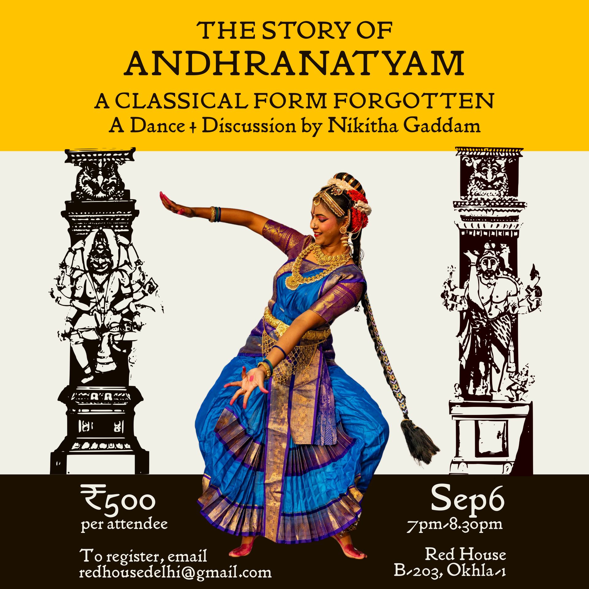 Flying in from Hyderabad, Nikitha Gaddam (Doordarshan-graded Andhranatyam artist devoted to reviving lost narratives and breathing new life into this ancient form through performance, research, and digital storytelling) will lead us through the hidden history of this art of the Telugu people. From invocations to guardian deities, to Satyabhama’s passionate call for Krishna, you will experience the ritual, intimacy, and lyrical storytelling that make Andhranatyam unlike anything else.