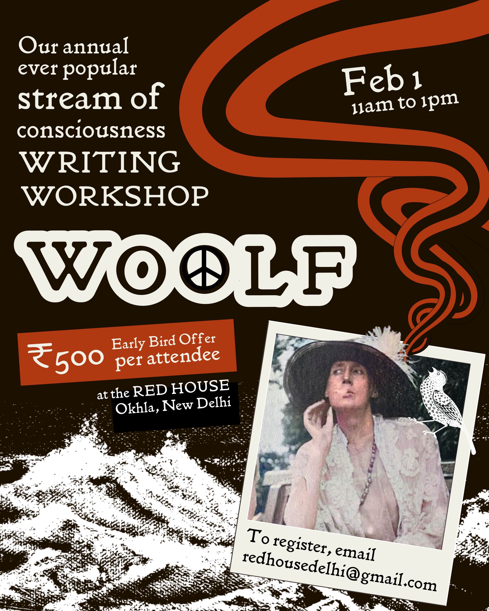 In this workshop, we will delve into the captivating world of the stream-of-consciousness method of writing — a technique employed not only by Woolf but also by literary giants such as James Joyce, Marcel Proust, Jack Kerouac, Sylvia Plath, and many others. Through an immersive introduction to the technique, hands-on practice of specific technical aspects, and a series of guided writings and readings, you will gain the tools for raw self-expression and exploration.