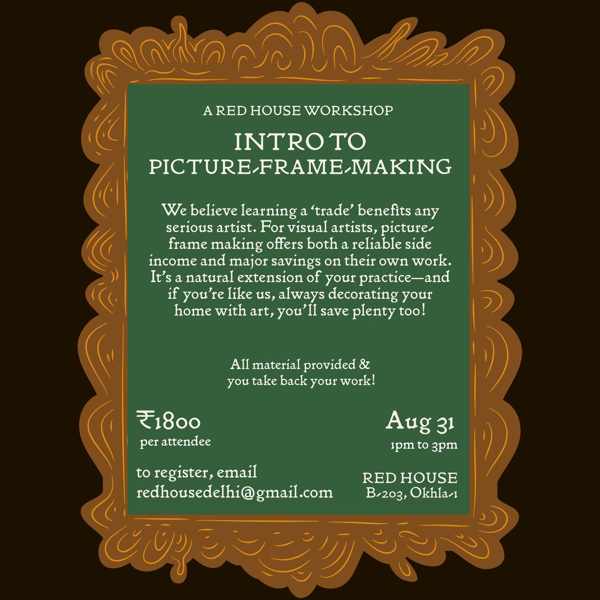 As a cultural centre, we suppose we're already in the business of 'framing' sufficiently significant cultural ongoings in the city, aren't we? This Sunday, learn how to frame pictures by Arjun Shivaji Jain - director of Red House and a graduate of Central Saint Martins of the University of Arts London.